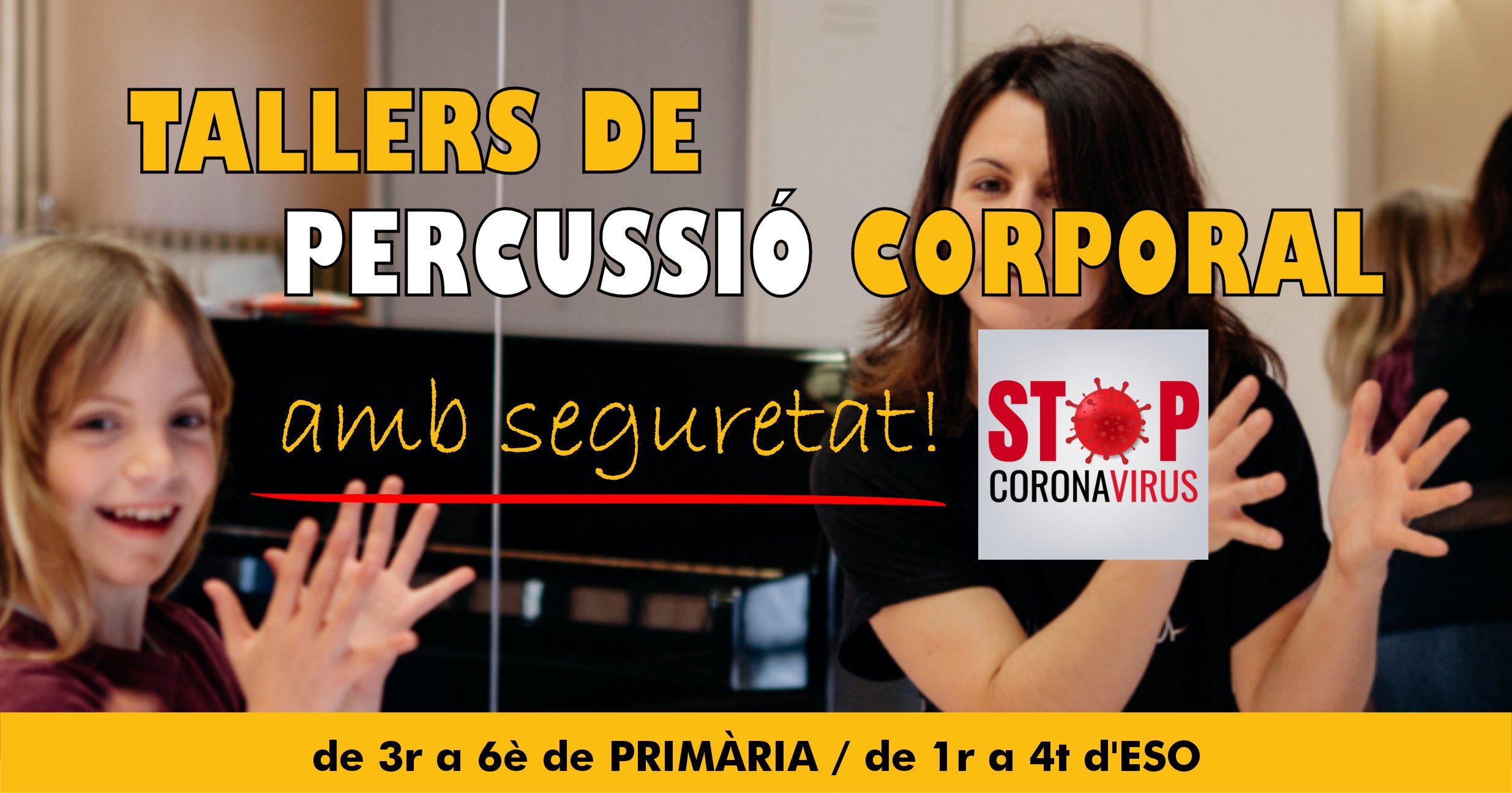 TALLERS REDUÏTS PER A GRUPS ESTABLES I GARANTITS: SI CAL, AL VOSTRE CENTRE Les 66 sessions dels Tallers de Percussió Corporal des de 3r de Primària fins a 4t d’ESO programades de gener a maig de 2021, es realitzaran amb grups reduïts de 50 alumnes fins un màxim de 64…