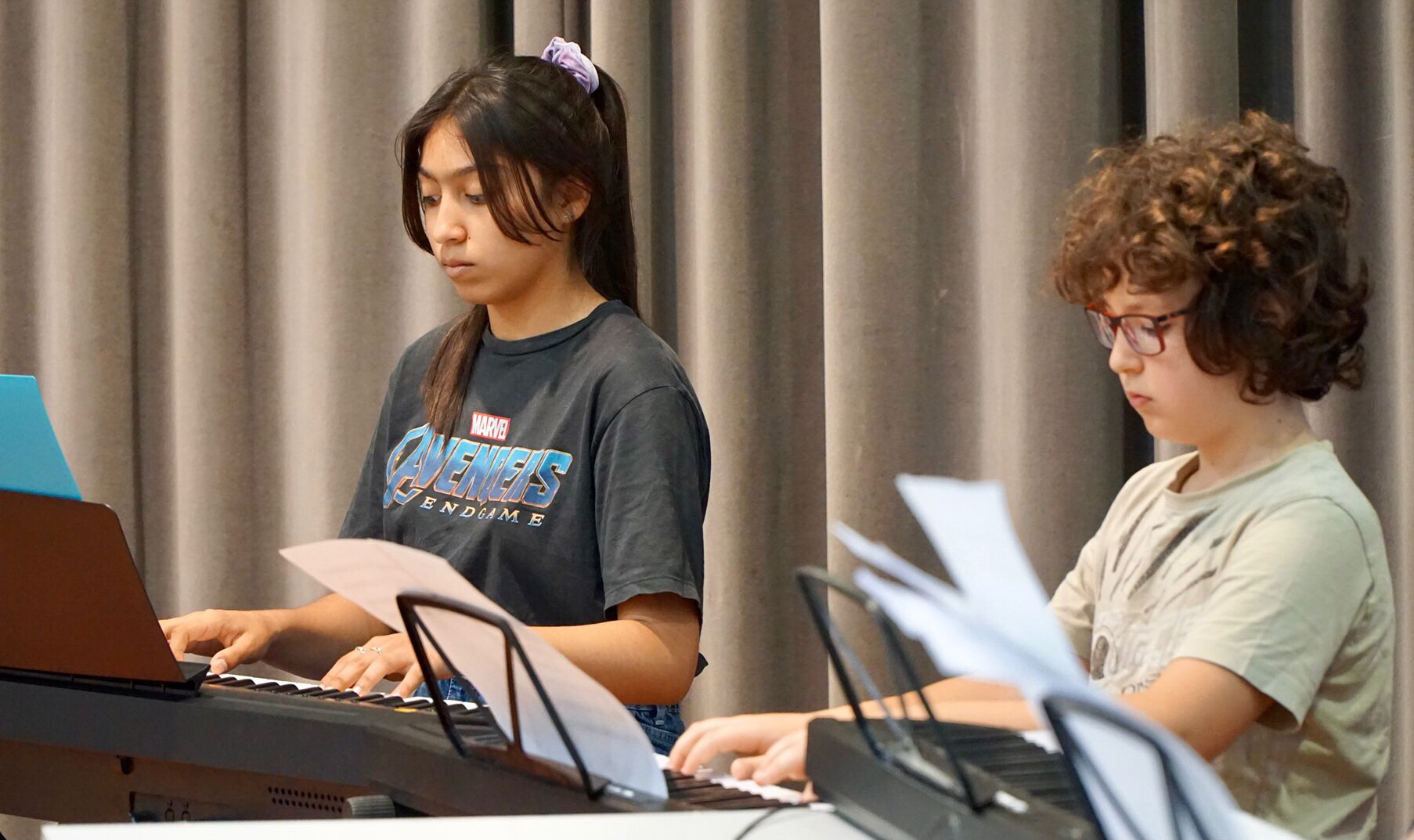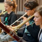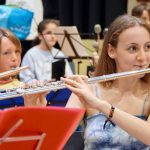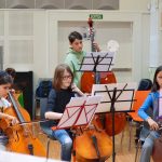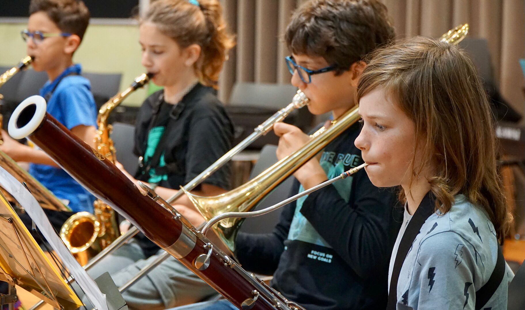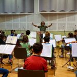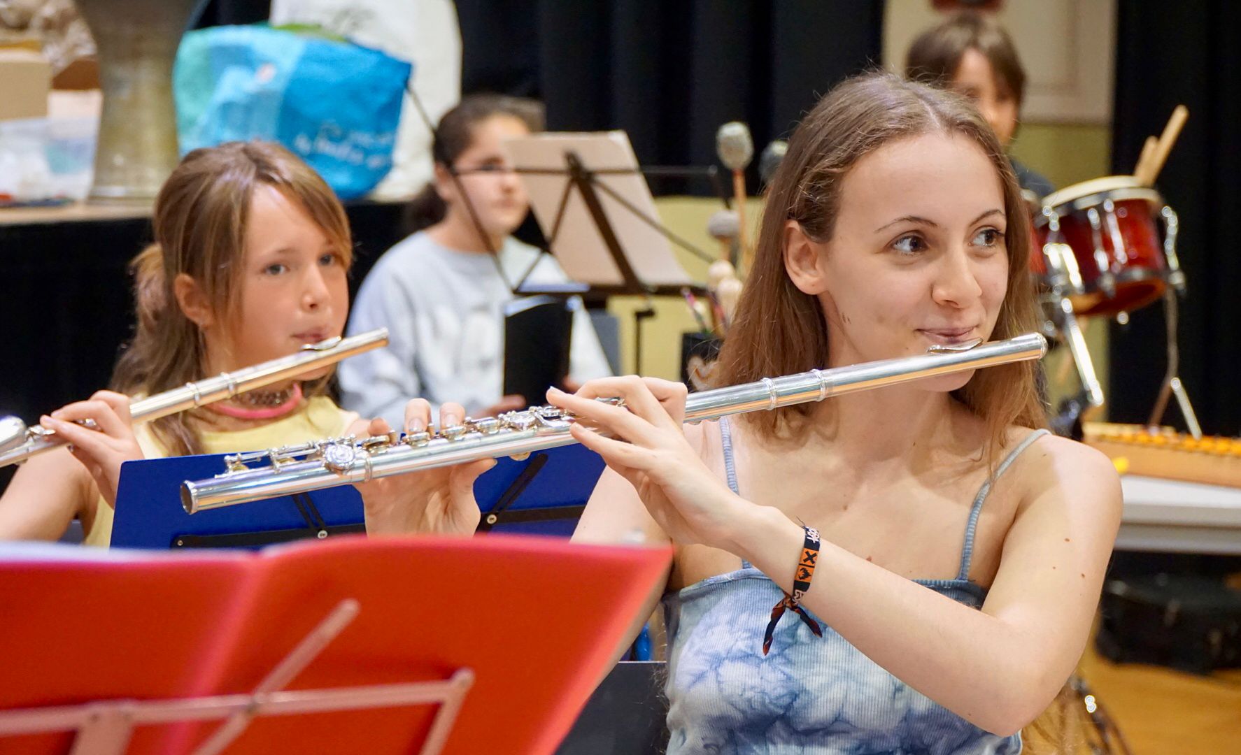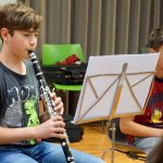 45 músics a partir dels 10 anys han estat preparant la part instrumental de la cantata escolar LA FÀBRICA DE COLORS, i la Secció de Grans de l’OIB, formada per 16 instrumentistes de 13 a 18 anys, han assajat la cantata infantil EL MEU COS.